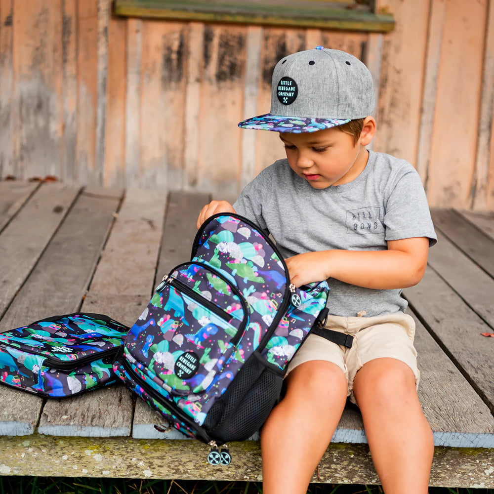 The Dino Party Cap is where prehistoric cool meets modern-day fun! Designed by Aussie artist Laura Blythman, this cap features a watercolour dinosaur print bursting with colour—set against a sleek black background for extra roar appeal.