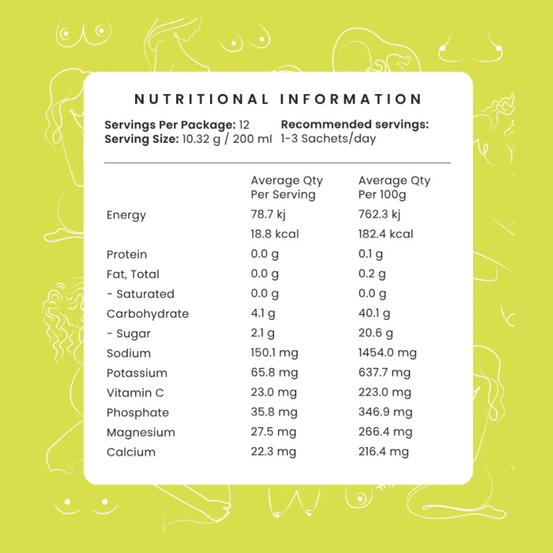 Each easy-to-use sachet contains electrolytes selected in line with Australian guidance for general hydration needs during pregnancy and postpartum. Simply mix with water for a bright, refreshing tropical drink that’s simple to add to your daily routine.